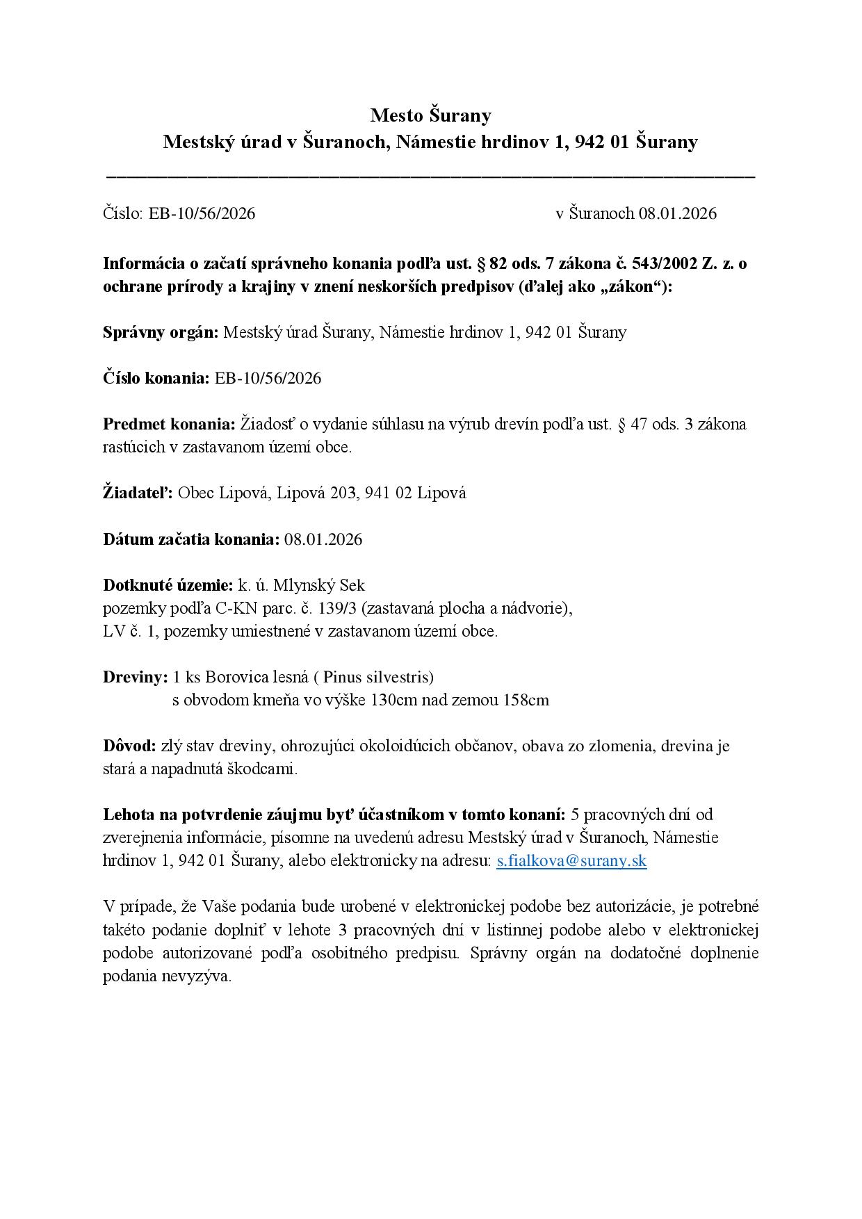 Info o zacati spravneho konania vyrub