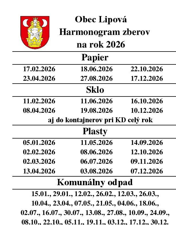 Harmonogram zberov 2026
